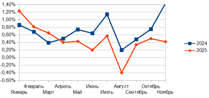 investor Опубликовано 11 Июля, 2025 в 16:50 Опубликовано 11 Июля, 2025 в 16:50 (изменено) Вышли данные Росстата по инфляции за июнь. Инфляция оказалась очень низкой: 0,2%. Для сравнения, в июне 2024 было 0,64% - именно из-за таких данных ЦБ начал тогда повышение КС. Данные за июнь 2025 повышают вероятность снижения КС на 2 процентных пункта на заседании 25 июля. До заседания ещё выйдут данные по инфляционным ожиданиям, которые тоже влияют на решения ЦБ. Думаю, если инфляционные ожидания будут более-менее на прежнем уровне, ставку снизят на 2 п.п, а если будет существенный рост - на 1 процентный пункт. Изменено 11 Июля, 2025 в 16:59 пользователем investor Linel, IanAna и oppana 1 1 1
