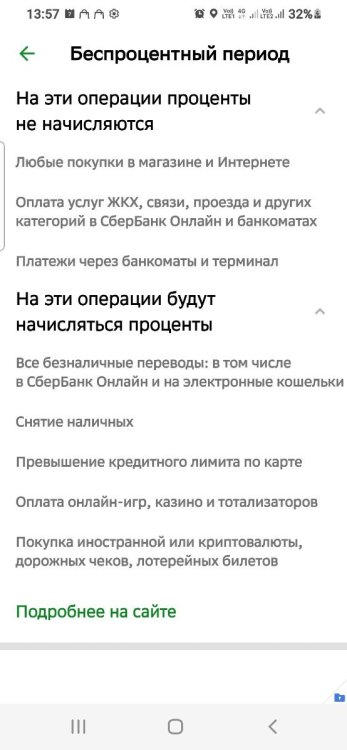 Linel Опубликовано 2 Апреля, 2024 в 06:44 Автор Опубликовано 2 Апреля, 2024 в 06:44 В 01.04.2024 в 22:26, Wedeon сказал: Покопалась в настройках, подключенной страховки не нашла. Нашла 4 подключенных привилегии, 3 из них видно на экране, четвертую нигде не вижу, что это может быть? Ставка 9.8% в категории Здоровье - это ставка по кредиту, вам это не надо. Вы же будете все возвращать в грейс. То же самое и про Сбермегамаркет. Про 4-ю привилегию ничего не могу сказать. Если страховки нет - значит всё нормально. СМС по карте бесплатные. Ничего не бойтесь, карта очень простая в использовании. Wedeon 1 Цитата