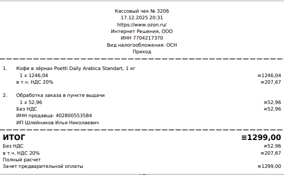 oppana Опубликовано 18 Декабря, 2025 в 05:41 Опубликовано 18 Декабря, 2025 в 05:41 Делала покупку на Озон у партнера и впервые получила вот такой чек. Это получается мне за кофе не со всей суммы начислять кешбэк??? Я на полную стоимость рассчитывала с 1299р.