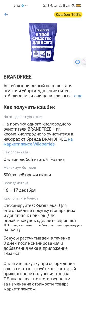 chvi Опубликовано 15 Декабря, 2025 в 14:11 Опубликовано 15 Декабря, 2025 в 14:11 В 15.12.2025 в 10:14, bk003 сказал: Кэшбэк 100% на WB на чистящее средство. У меня на всех аккаунтах. За качество средства ничего сказать не могу, но если бесплатно, то надо брать Все видно раскупили утром.Уже нет его по ссылке.Да и не очень то хотелось брать все подряд,что не очень и нужно.