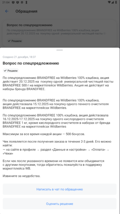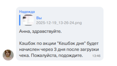 chvi Опубликовано 20 Декабря, 2025 в 11:15 Опубликовано 20 Декабря, 2025 в 11:15 В 09.12.2025 в 09:26, chvi сказал: По второй акции в кешбеке отказано.Сказали,что всего можно было купить 1 банку. Нигде об этом не было написано.Зачем тогда делать такие предложения и в разные дни ? Переживу,не получив 70 руб . Почти через 10 дней все же начислили 70 руб.,хотя и не обращалась повторно. Причем сделали все странно .Тот ,что вручную начислили за Ашан -забрали назад ,а за покупку в Дикси начислили все 100 % вместо 50%,