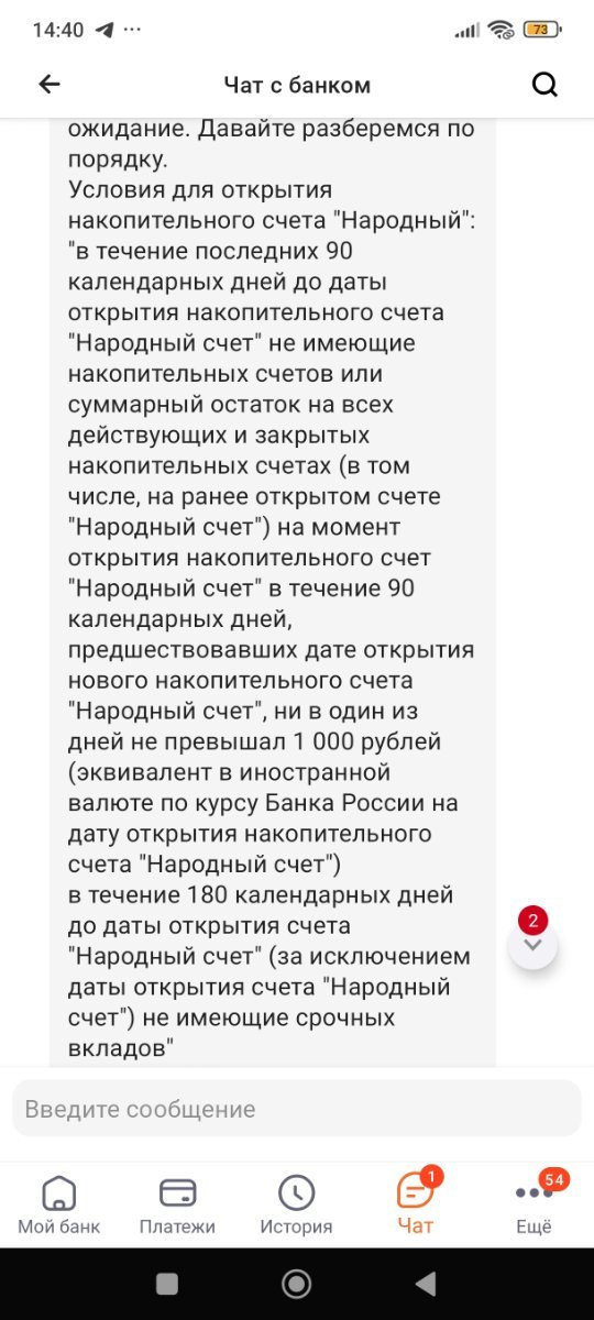 leo messi Опубликовано 9 Сентября, 2025 в 12:37 Опубликовано 9 Сентября, 2025 в 12:37 (изменено) В 02.09.2025 в 00:26, radom сказал: но делать это надо в один день и начинать с НС... Почему именно начинать с нс? Вот условия нс https://www.psbank.ru/qpstorage/psb/images/personal/savingsaccount/usloviya-narodniy-schet.pdf У нс написано *Новые клиенты – клиенты, не имеющие и не имевшие накопительных счетов1 в течение последних 90 (девяносто) календарных дней до даты открытия накопительного счета «Народный счет», или клиенты, у которых суммарный остаток на всех действующих и закрытых накопительных счетах (в том числе, на ранее открытом счете «Народный счет») на момент открытия накопительного счет «Народный счет» в течение 90 календарных дней, предшествовавших дате открытия нового накопительного счета «Народный счет», ни в один из дней не превышал 1 000 рублей (эквивалент в иностранной валюте по курсу Банка России на дату открытия накопительного счета «Народный счет») и (или) клиенты, не имеющие и не имевшие срочных вкладов в течение 180 (ста восьмидесяти) календарных дней до даты открытия счета «Народный счет» (за исключением даты открытия счета «Народный счет» Вот условия вклада https://www.psbank.ru/qpstorage/psb/images/conditionsterms.pdf У вклада написано Новые вкладчики – клиенты не имевшие действующих срочных вкладов и (или) накопительных счетов (в т.ч. с нулевыми остатками) в течение 180 (ста восьмидесяти) календарных дней, предшествующих дате открытия вклада «Народный вклад» (за исключением даты открытия вклада «Народный вклад» и 6 календарных дней предшествующих дате открытия вклада «Народный вклад»), а также срочных вкладов и (или) накопительных счетов, закрытых в дату открытия вклада «Народный вклад» и в течение 180 (ста восьмидесяти) календарных дней, предшествующих дате открытия вклада «Народный вклад» . (Причем про 6 календарных дней же полгода назад ничего не было? Это добавили совсем недавно ?) В общем, я понять ничего не могу. У меня разборки с ифигтивными апираторами уже с утра идут, никто из этих олухов не может внятно объяснить , в каком порядке нужно открывать. Были тебя кто пишктя что невозмодно одновременно открыть и нс с надбавкой , и вклад, были тебя кто говорил, что сначала вклад, были те, кто говорил, что сначала счёт. Вот скрины с операторами. А так же их телеграма с канала скрин, где сказано, что нужно сначала открывать вклад, а не счёт. Изменено 9 Сентября, 2025 в 12:39 пользователем leo messi Цитата