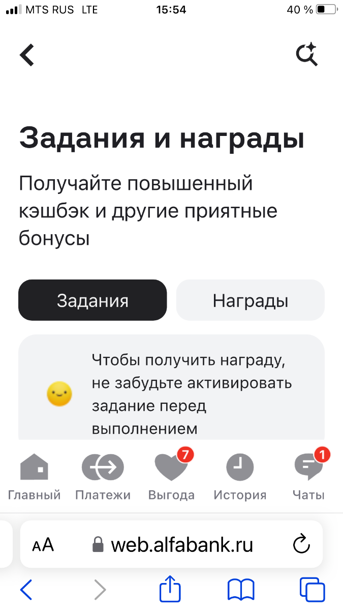 Linel Опубликовано 2 Ноября, 2025 в 12:19 Опубликовано 2 Ноября, 2025 в 12:19 В 02.11.2025 в 15:02, Адалхорп сказал: там отродясь не было заданий даже у тех, кто получил их в мп У меня нет МП, Альфа прекратила обслуживать МП для айфона с котиком, которое у меня было. Поэтому я вывела на экран смартфона ИБ. И там в разделе "Кэшбэк и сервисы" если раздел "Задания и награды". Жаль, ЖКХ там нет. У мужа есть МП, но ни в МП, ни в ИБ у него нет этого раздела.