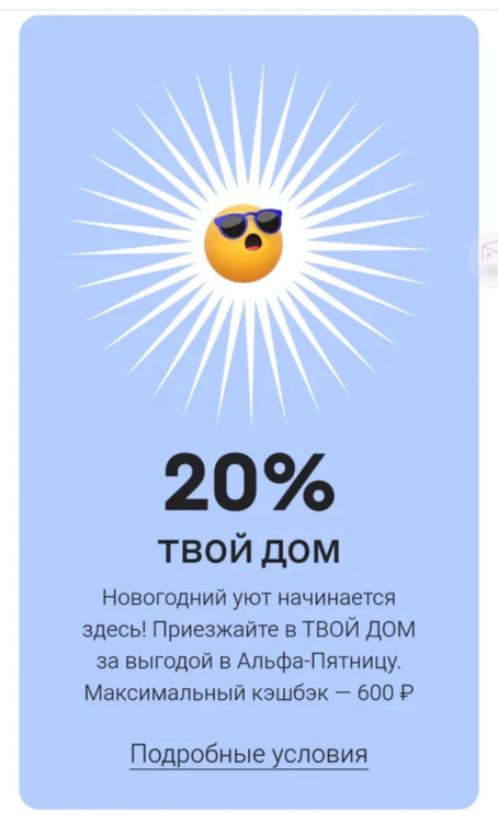 radom Опубликовано 15 Декабря, 2025 в 08:37 Опубликовано 15 Декабря, 2025 в 08:37 В 15.12.2025 в 11:31, bk003 сказал: На ближайшую пятницу - 19 декабря - барабан кэшбэка на покупки в "Твой Дом". также крутите "Альфа-инвестиции"... можно получить акцию в несколько тысяч рублей...